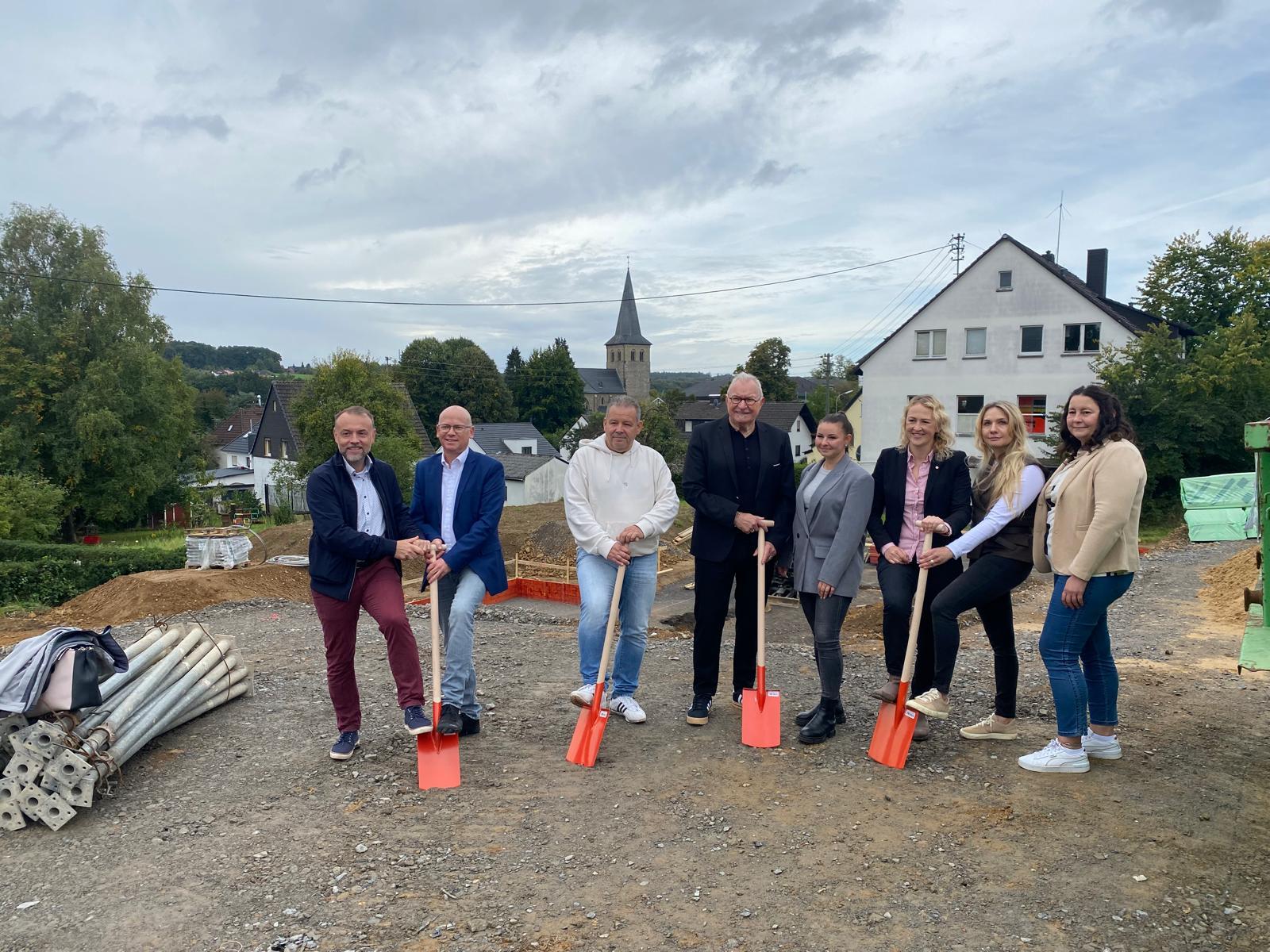 Der Ruppichterother Bürgermeister Mario Loskill stellte im Rahmen des Spatenstichs gemeinsam mit den beiden Investoren, mit dem Architekten, mit dem Kreisjugendamt und mit dem Träger der künftigen Kita, der Johanniter-Unfall-Hilfe e.V. das für die wei-tere Entwicklung der Gemeinde Ruppichteroth bedeutende Projekt vor.